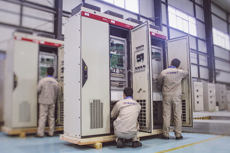 本套岸電系統(tǒng)在碼頭前沿的電纜接電箱和電纜卷盤車的設(shè)計上都運用了國內(nèi)首創(chuàng)的防爆型設(shè)計,防爆等級為IIBT4,實際大部分設(shè)備防爆等級達到了IIBT6,符合GB3836.1-2000《爆炸性氣體環(huán)境用電氣設(shè)備 第1部分:通用標準》要求,較傳統(tǒng)岸電系統(tǒng)更加安全可靠,符合?;a頭接岸電需求。本系統(tǒng)核心部分變頻電源為2套森蘭SB70P系列變頻電源,單臺容量1MVA,采成直流共母排方案。SB70P系列低壓岸電變頻電源基于森蘭22年成熟低壓平臺技術(shù)的基礎(chǔ)上,針對岸電電源應(yīng)用需求特點定制開發(fā)的新一代高性能變頻電源,具有動態(tài)響應(yīng)快,過載能力強,控制精度高等優(yōu)點,無論是系統(tǒng)拓撲結(jié)構(gòu)選擇,控制性能,還是散熱系統(tǒng)設(shè)計,都首屈一指。具有以下特點: